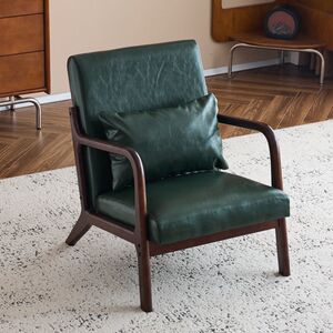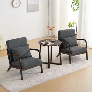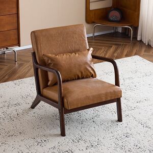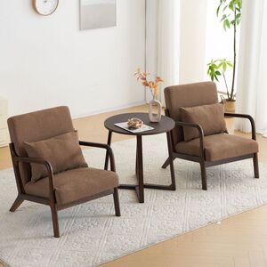 桔色PU皮胡桃色扶手(2椅+茶几)