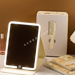 2025 新しい化粧鏡ライト付き LED デスクトップホーム学生化粧鏡ポータブル高精細デスクトップ折りたたみミラー