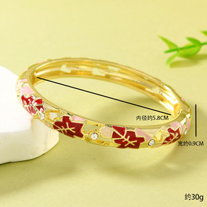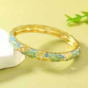 景泰蓝手镯女开口款简约百搭景区枫叶滴油成人外贸饰品