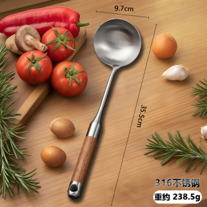 316不锈钢锅铲汤勺花梨木圆柄厨具套装带挂钩厨房炒菜煎铲漏勺