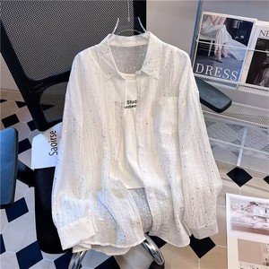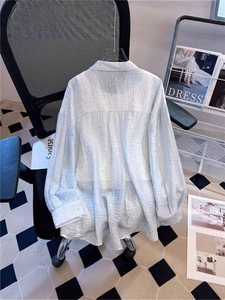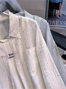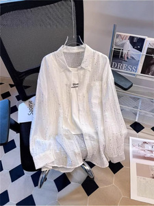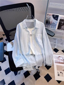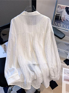 2025夏季新款甜美亮闪闪肌理感休闲衬衣小个子宽松防晒长袖衬衫女