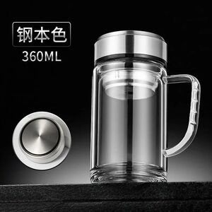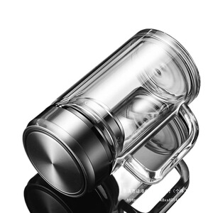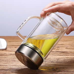 男士高档泡茶双层玻璃杯把手水杯大容量杯子便携茶水分离杯隔热