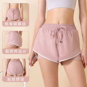 秋冬新款高腰收腹假两件运动短裤女 瑜伽跑步防走光速干健身热裤