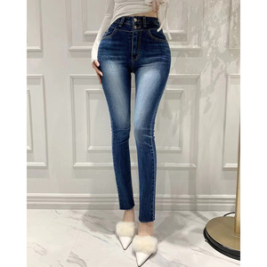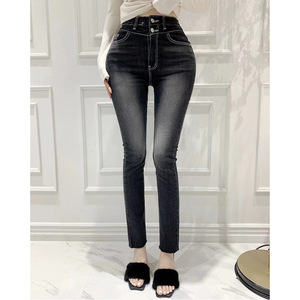 梵思羽高腰牛仔裤女2025夏季新款显瘦烟灰色修身紧身小脚铅笔裤子