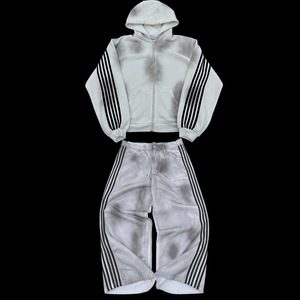 跨境千禧年欧美街头风格哥特刺绣拉链连帽衫脏水印牛仔裤卫衣套装