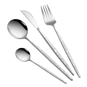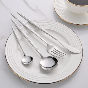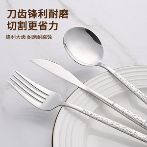 跨境410不锈钢锤纹葡萄牙酒店4件套 牛排刀叉勺轻奢高级西餐餐具
