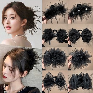 8#黑色羽毛网纱泡泡抓夹12.5CM#