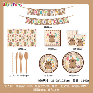 カピバラホリデーパーティーテーマ食器セット使い捨て紙皿紙コップペーパータオル装飾テーブルクロスフラグ