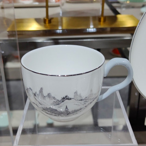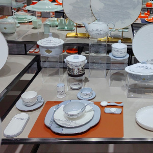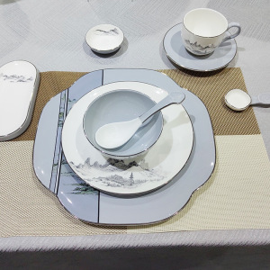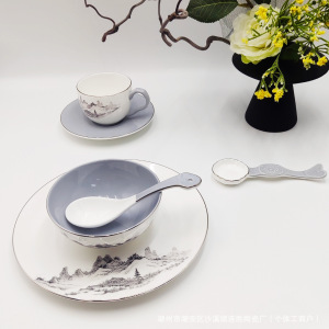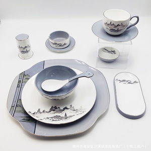 ホテルクラブ向け高級ボーンチャイナ食器セット、色釉金縁銀光山水模様、新中式宴会場テーブル装飾、直送