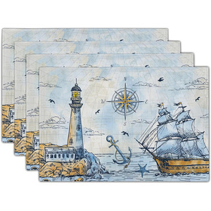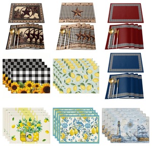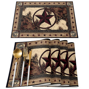 国境を越えた売れ筋レトロウエスタンテキサススターマリンプレースマット白黒バッファローチェックひまわりレモンテーブルマット