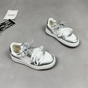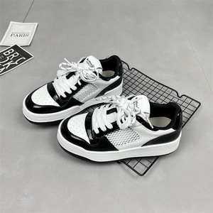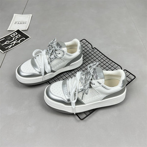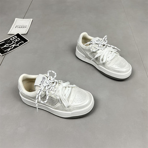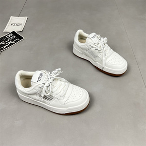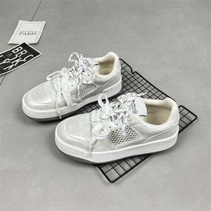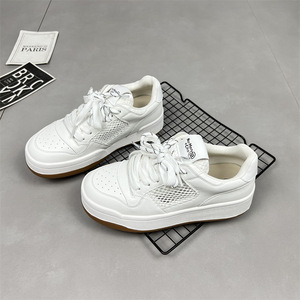本革小麦ケーキハウスメッシュ白靴女性のための 2025 夏の新しいカレッジスタイルスポーツカジュアルシューズ厚底スニーカー