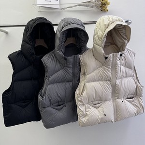 ヨーロッパショートコットンベストレディース春秋新作小柄ファッション万能フード付きシンプルノースリーブベストトップ