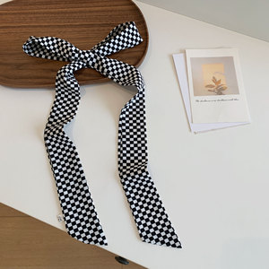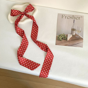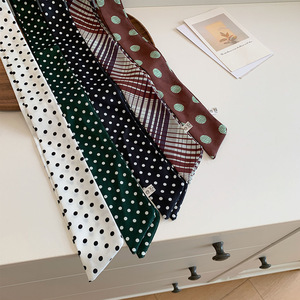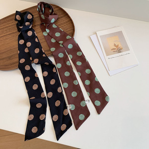 レトロでファッショナブルな水玉模様のロングシルクスカーフ、春と秋のホットガールファッション、多用途の装飾スカーフ、細いリボン