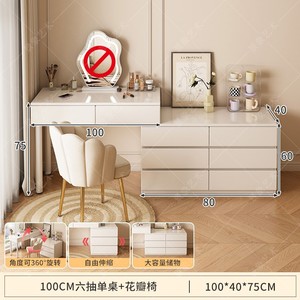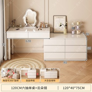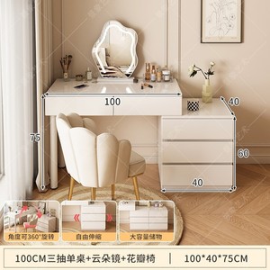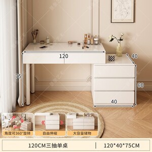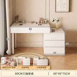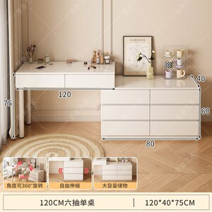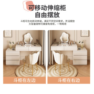 奶油风梳妆桌简约收纳柜床头柜一体伸缩转角书桌床尾斗柜化妆台