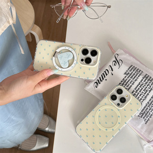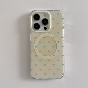 Apple iPhone16promax 保護カバー 13/14pro に適した二重層磁気黄色背景フルスクリーン青い愛