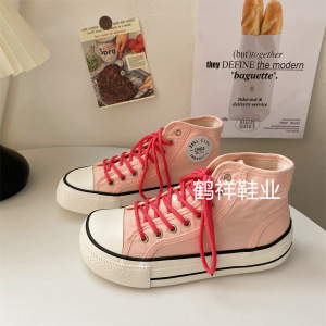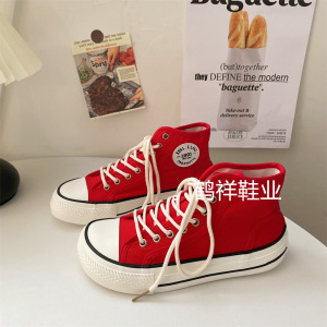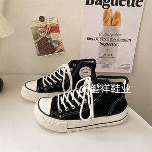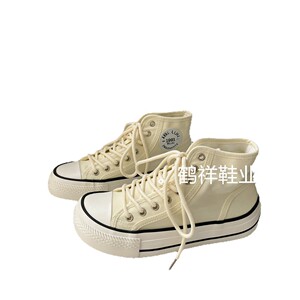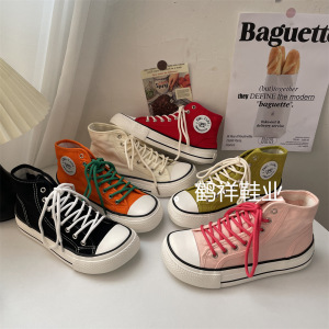 在庫あり 2025 新しいハイトップワイドバージョンマンゴーヘッド韓国スタイル多用途キャンバスシューズ女性の軽くて通気性のあるスニーカー小さな白い靴