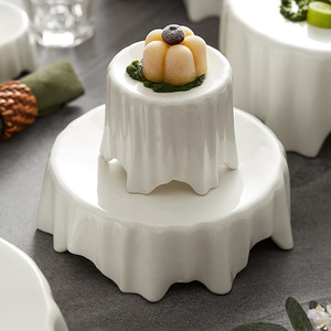 陶瓷高脚盘意境菜餐具摆盘酒店餐厅特色不规则西餐盘白色盘子圆形