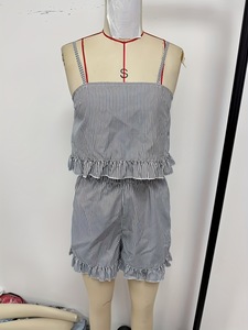2025 春夏新作シンプルなウエストゴムパンツコントラストストライプ耳セクシーなキャミソールトップショーツセット