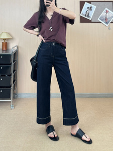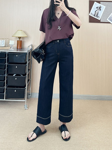 四面弹秋季防褪色小雏菊重工刺绣九分裤2025高腰显瘦直筒牛仔裤
