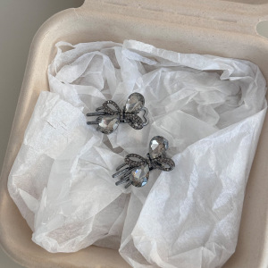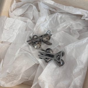 甘い前髪、高級感、美しいラインストーンサイドクリップ、中空リボン、額の前髪、アヒルのくちばしクリップ、ヘアピン、ヘアピン