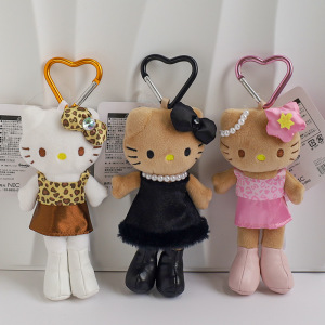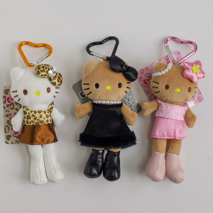新款hello kitty豹纹长腿名媛风挂件毛绒公仔玩偶包包挂饰钥匙扣