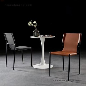意式极简马鞍皮餐椅家用餐桌现代简约椅子休闲酒店咖啡厅办公椅