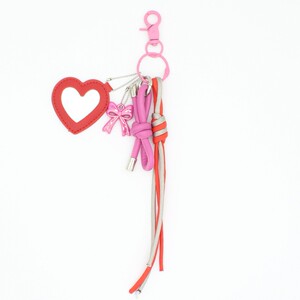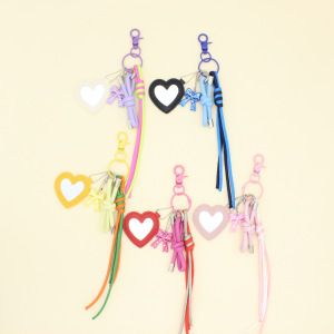 新しい赤い愛の革化粧鏡屋外メイクアップリボン手織りキーホルダーバッグペンダント