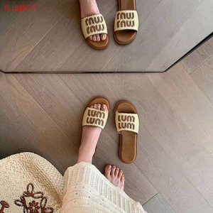 ヨーロッパステーション 2025 新しい夏のスタイルの女性用編み込みスリッパ、女性用カジュアル編み込みフラットビーチサンダル