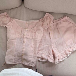 粉色芭蕾风短袖睡衣女夏季纯欲风甜美纯欲蕾丝花边家居服短裤套装