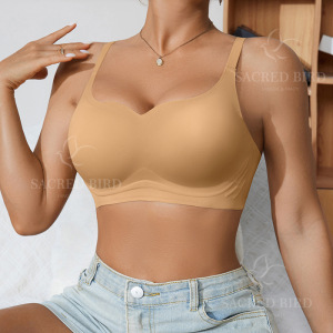 ゼリーストリップサポートプッシュアップ女性のシームレスな軽量下着リキッドファンデーション夏プラスサイズスポーツ衝撃吸収ブラジャー