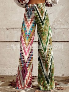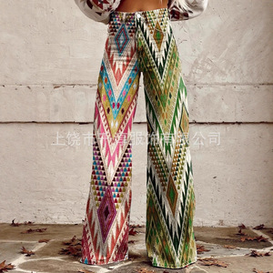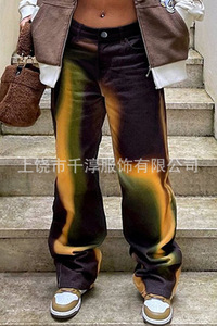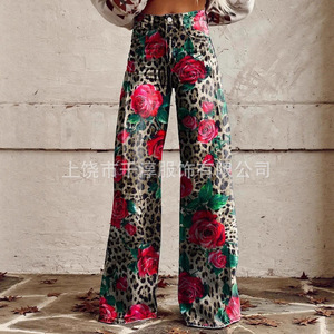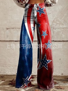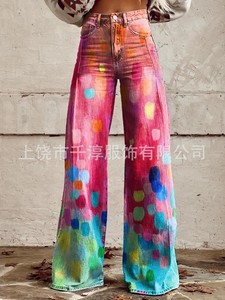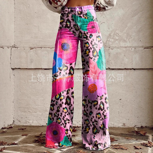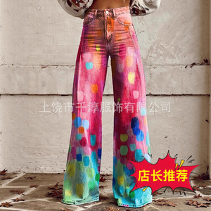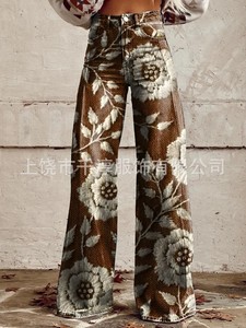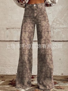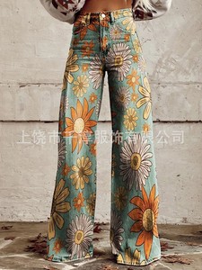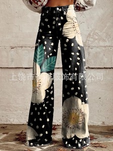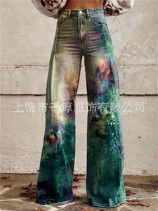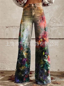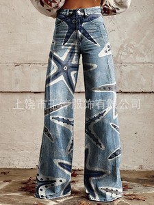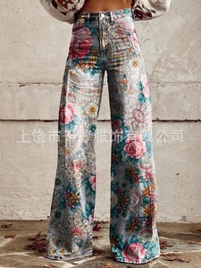 独立したサイト Xiyin ヨーロッパとアメリカの貿易クロスボーダーレディースカジュアルパンツプリント模造ジーンズワイドレッグ 3D トレンディなファッション女性