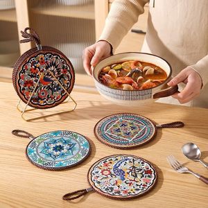 复古隔热垫耐高温砂锅防烫垫珐琅锅垫子陶瓷新中式餐桌防滑餐盘垫