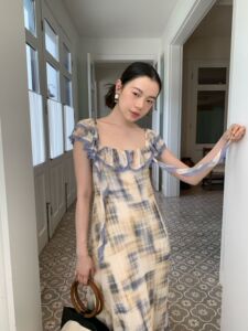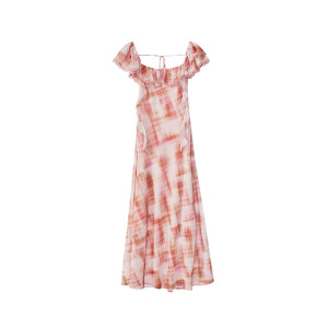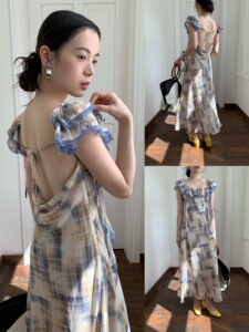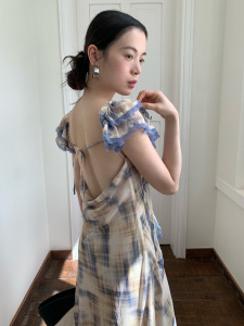 Quanlimei NEWOPEN 25 夏フレンチリゾートスタイル優しい背中の開いたフリルリボンドレス女性のための S5777