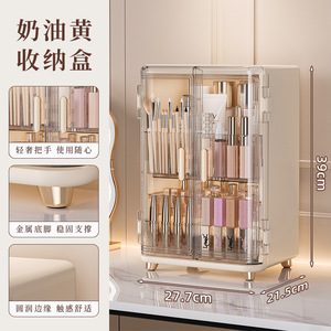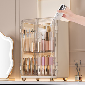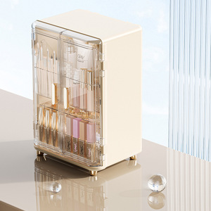 収納ボックス 収納ボックス デスクトップ防塵 スキンケア製品収納ラック ドレッシングテーブル 両開きドア収納 大容量化粧キャビネット