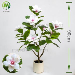高級人工緑化植物、玉蘭の盆栽、室内用人工樹木、リビングルーム用大型床置き玉蘭の装飾品