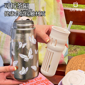 Jufu 純チタンミルクストロー魔法瓶カップポータブルダブルドリンクカップ 2025 新しいスタイルの女の子のための高価値と大容量