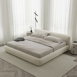 テクノロジーファブリックベッドネットレッドわびさびスタイルマスターベッドルームダブルベッド畳モダンシンプルパフソフトベッドクリームスタイル