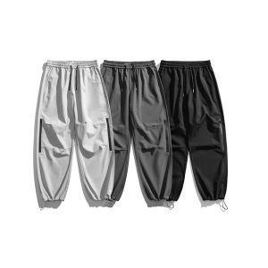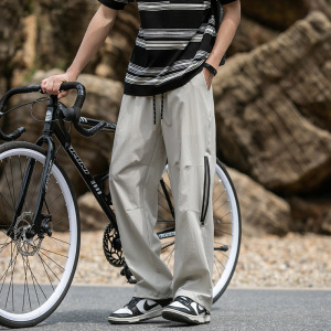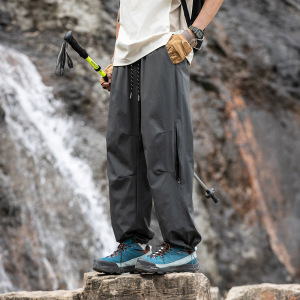 日焼け止め機能付きメンズアウトドアパンツ、防シワ防水、トレンドブランド、ゆったりストレートワイドレッグ、通気性のあるカジュアルロングパンツ