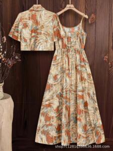 Amazon TikTok Pinduoduo 外国貿易クロスボーダーヨーロッパとアメリカのプラスサイズの婦人服新しいツーピースホリデースタイルサスペンダー