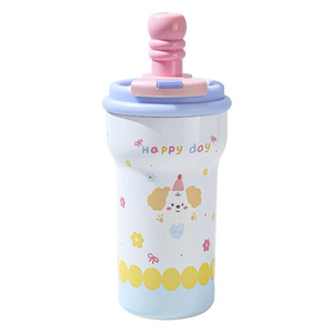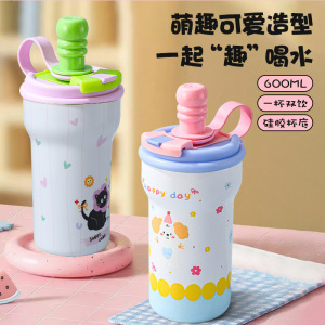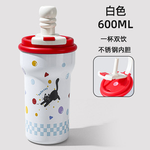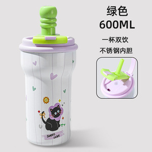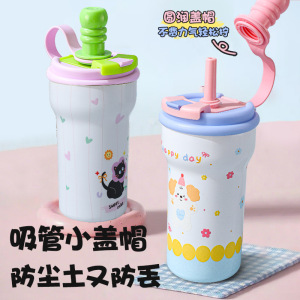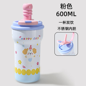 新しい高品質 316 ステンレス鋼魔法瓶カップ大容量学生ポータブルストローカップ漫画ダブルドリンクフラワーティーカップ