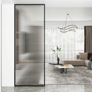 现代简约入户客厅玻璃屏风卫生间实木遮挡轻奢金属不锈钢玄关隔断