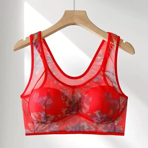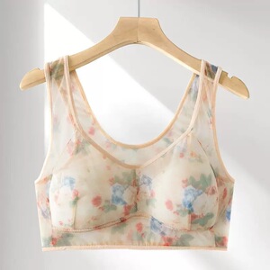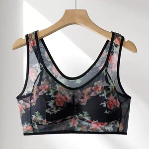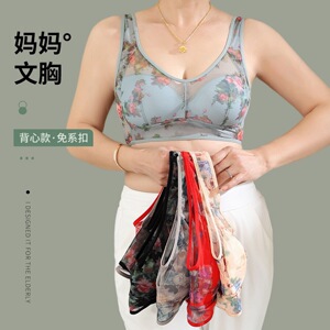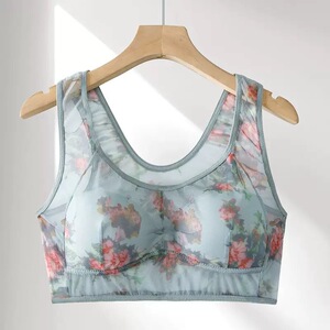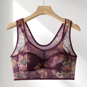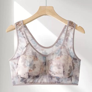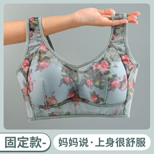 中高年ママ向け薄型大きいサイズ固定カップベスト風プリントプッシュアップノンワイヤー快適通気性下着女性用