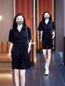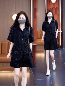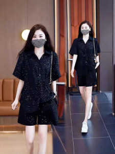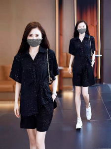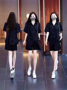 大码休闲时尚套装女2025夏季新款女装衬衫遮肉显瘦减龄洋气两件套