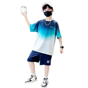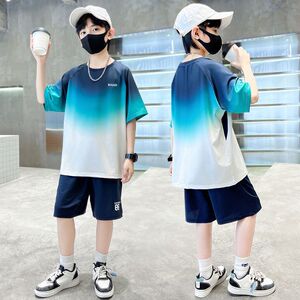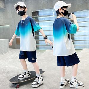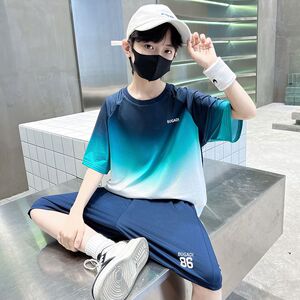男童速干套装中大童夏季新款儿童渐变两件套短袖夏装球服t恤