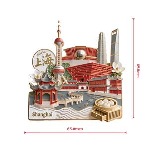 上海冷蔵庫マグネット金属レリーフ技術上海観光名所お土産新中国風上海冷蔵庫マグネット文化創造