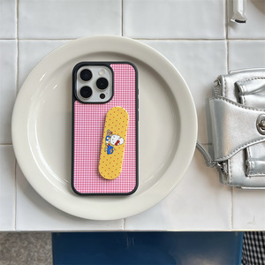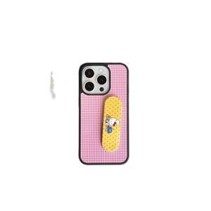 黒フレーム赤チェック柄シェル+黄色底水玉シェフKTバンドエイドブラケット