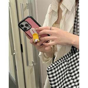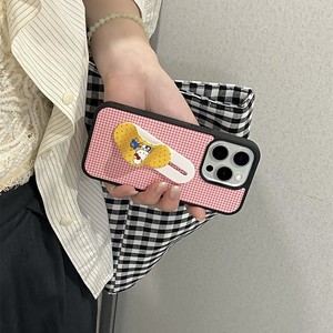 赤い格子柄の波点シェフKTスタンド付きiPhone17/Apple 16ProMax/15/14対応のかわいいスマホケース