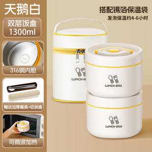 316大双层-天鹅白1300ml+保温袋+餐具3件套【发泡保温技术】@