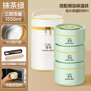 316三层-抹茶绿1550ml+保温袋+餐具3件套【发泡保温技术】@