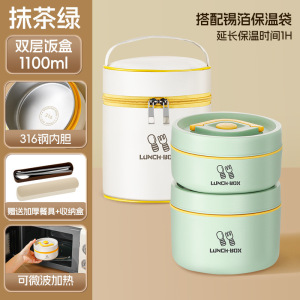 316双层-抹茶绿1100ml+保温袋+餐具3件套【发泡保温技术】@